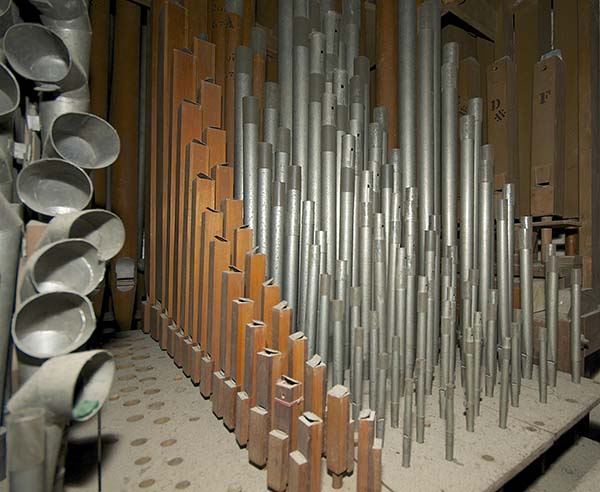 The organ is located in the west gallery of the Cathedral. The Austrian oak case, modeled in gothic tracery, rises to a height of 45 feet (14 metres) on either side. Filling the openings are 77 highly polished and burnished decorative pipes of pure tin. The actual organ pipes (there are 2,500) are placed behind the casework, together with the bellows and other mechanism. The motor and blower are located in a special room in the Cathedral tower. The action of the organ was originally tubular pneumatic, but this was changed to electro pneumatic in the early 1970’s. The console has three manuals and a pedal-board; there are 46 speaking stops, as well as combination stops and pistons. A second, almost identical, console is located in the south transept.